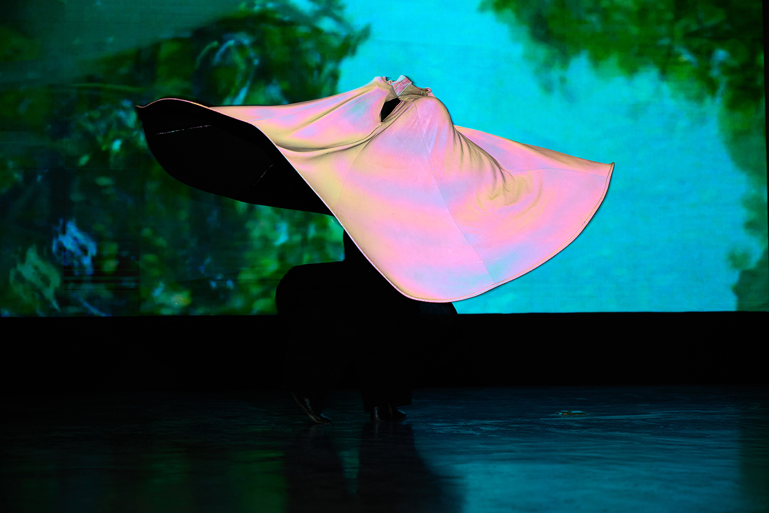 Uno de los momentos más precisos del programa fue la performance Selva Humana, de Ana Elena Tejera. A través de proyecciones sobre el cuerpo y una coreografía circular, la obra convocó las memorias sumergidas por la construcción del Canal de Panamá. Allí, el archivo se activó como experiencia más que como documento. Lo que se puso en juego no fue una reconstrucción histórica, sino la persistencia de lo que quedó fuera del relato oficial.