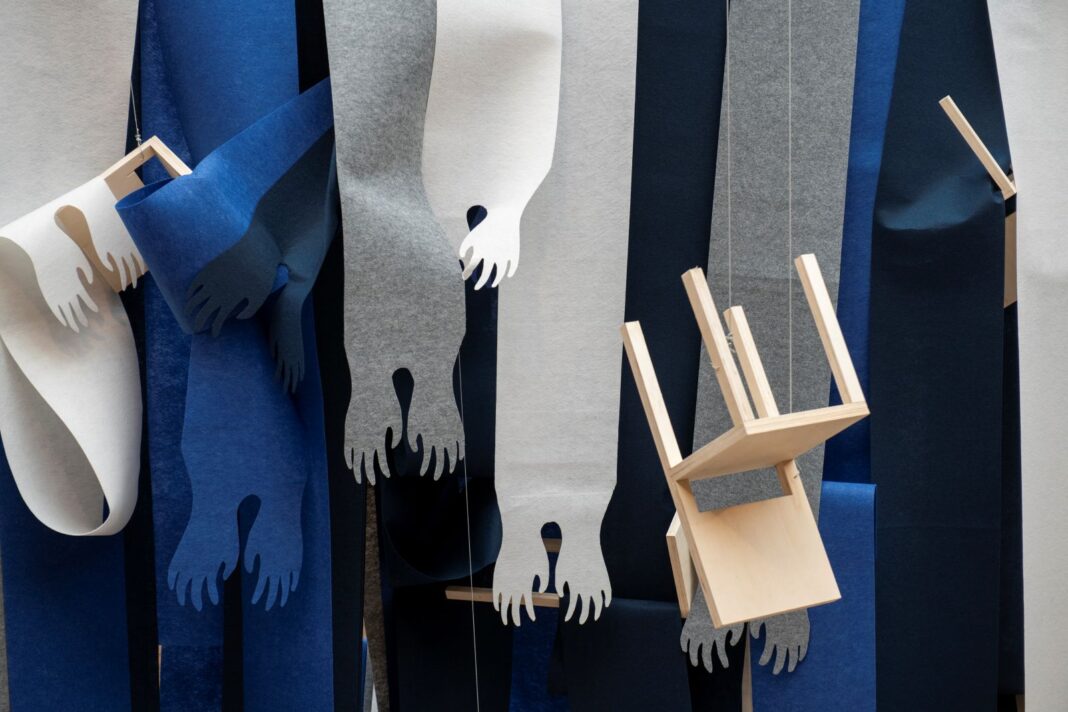 Lo que sí cambia es la escala. La monumentalidad de la instalación no responde a una lógica espectacular, sino a la necesidad de envolver al espectador en una experiencia física. El cuerpo ya no es solo representado; es producido espacialmente. El visitante no observa la obra desde fuera, sino que se ve implicado en su campo de fuerzas, obligado a negociar su propia posición frente a estas masas textiles que, aunque inertes, parecen cargadas de movimiento.