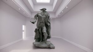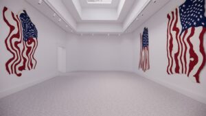 La propuesta de Lazzarini planteaba llenar el edificio neoclásico con obras que reinterpretaran símbolos fundacionales de la identidad estadounidense —banderas, un cañón de la Guerra Civil, una estatua de George Washington— sometidos a distorsiones matemáticas, en un lenguaje que ponía en tensión el ideal y la realidad. Afuera, una gran escultura representaría un águila deformada, inspirada en el adorno de una bandera del siglo XIX.