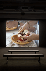 El contexto expositivo del MACRO, particularmente la sala dedicada al video, acompaña esta propuesta sin sobrecargarla. La instalación privilegia una relación directa con la obra, evitando dispositivos interpretativos excesivos. Esta decisión permite que el tiempo del espectador se ajuste al ritmo del trabajo, algo fundamental en piezas que requieren una atención sostenida.