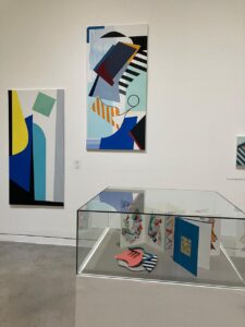 El título de la muestra no es azaroso. Remite directamente al concepto japonés de Ukiyo-e (imágenes del mundo flotante), ese género de grabados que celebraba los placeres efímeros y la belleza de lo transitorio. Fleurquin traduce esta filosofía a un lenguaje abstracto contemporáneo. En su serie «Kimono», la artista se aleja de la representación literal de la prenda para explorar su estructura gráfica: planos de color, subdivisiones métricas y texturas ornamentales que conviven en un equilibrio precario.