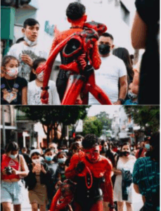 En diálogo con esa sensibilidad, Por hueco de Kevinn Dubón ha convertido el cuerpo queer en superficie de confrontación política. La acción de introducirse en una caja de cartón en espacios públicos de tránsito transforma el insulto y la exclusión en un gesto de presencia radical. Dubón ha podido articular una poética de la precariedad donde migración, sexualidad y violencia institucional se entrelazan con precisión. La pieza no dramatiza: activa una escena de extrañamiento que devuelve visibilidad a cuerpos que suelen circular entre el estigma y la indiferencia.