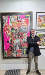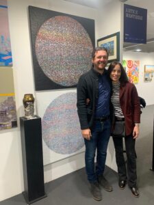Rocky Cervini con una de sus obras que han participado en la Nuvola en Roma (2025)