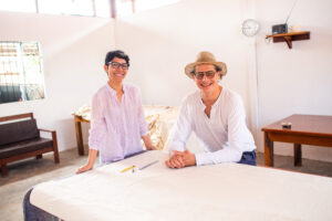 El arte es algo universal, con el poder de conectar con personas aun si no hablan tu mismo idioma. Cuando mi trabajo viaja, puede que la gente lo interprete de diferentes maneras, pero lo esencial siempre permanece. Lo que valoro es que las personas reconozcan la conexión profunda que tenemos entre nosotros, con el otro, y con los seres espirituales. El kené es un lenguaje visual que nos une y que nos recuerda quiénes somos. Aunque las obras estén lejos de la Amazonía, siguen llevando consigo la memoria del territorio y de las plantas. Por eso yo utilizo solo tintes naturales, arcilla extraída respetuosamente del agua, con los cuales pinto sobre el lienzo crudo.