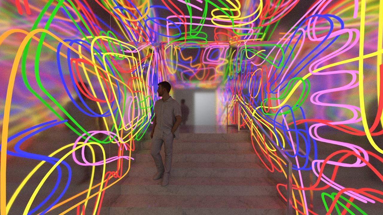 La instalación lumínica transforma el Museo Nacional de Artes Decorativas en un escenario donde el espectador ya no observa, sino que participa, donde la decoración se convierte en estímulo, donde la ciudad se vuelve parte de la obra.