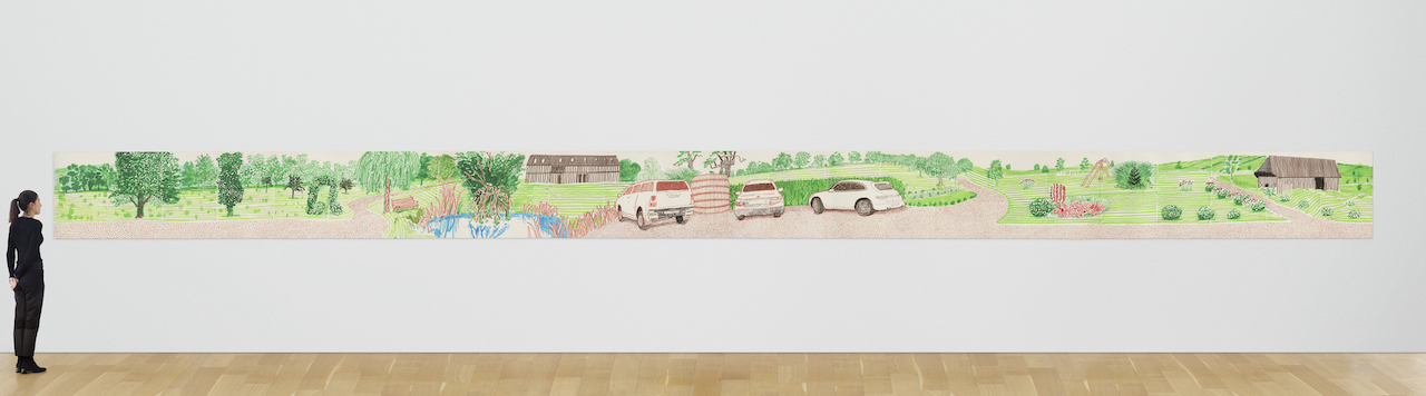 Hay un lote especial en venta en Christie’s, online, del 17 al 31 de marzo. Y expuesto, en las galerías de la casa en Londres, hasta el 31 de marzo. Se trata de una de las obras más grandes jamás realizadas por David Hockney, de nada menos que 12 metros de largo, impresa en una sola hoja de papel, además de ser su mayor estampa en edición. ¿El tema? La casa del artista en Normandía, en Francia, con el jardín en pleno verano: los verdes vibrantes de la hierba, los árboles y los setos contrastan con la arquitectura de los graneros medievales y con elementos contemporáneos como un columpio, una casa en el árbol y algunos vehículos estacionados. «Con Autour de la maison, été», explica James Baskerville, International Head of Contemporary Edition de Christie’s, «Hockney amplía las posibilidades de la estampa hasta una escala casi cinematográfica. La obra alcanza una extraordinaria extensión de doce metros y está realizada sobre una única hoja, invitando así al espectador a desplazarse por el jardín del artista como si estuviera leyendo un friso pictórico continuo».