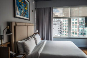 Al entrar, uno ya se encuentra con un primer vistazo de las obras del hotel, distribuidas en las habitaciones y espacios comunes. Todo proviene de la colección personal de Jack J. Sitt, director de Thor Equities Group, quien supervisó la curaduría y la remodelación del hotel.