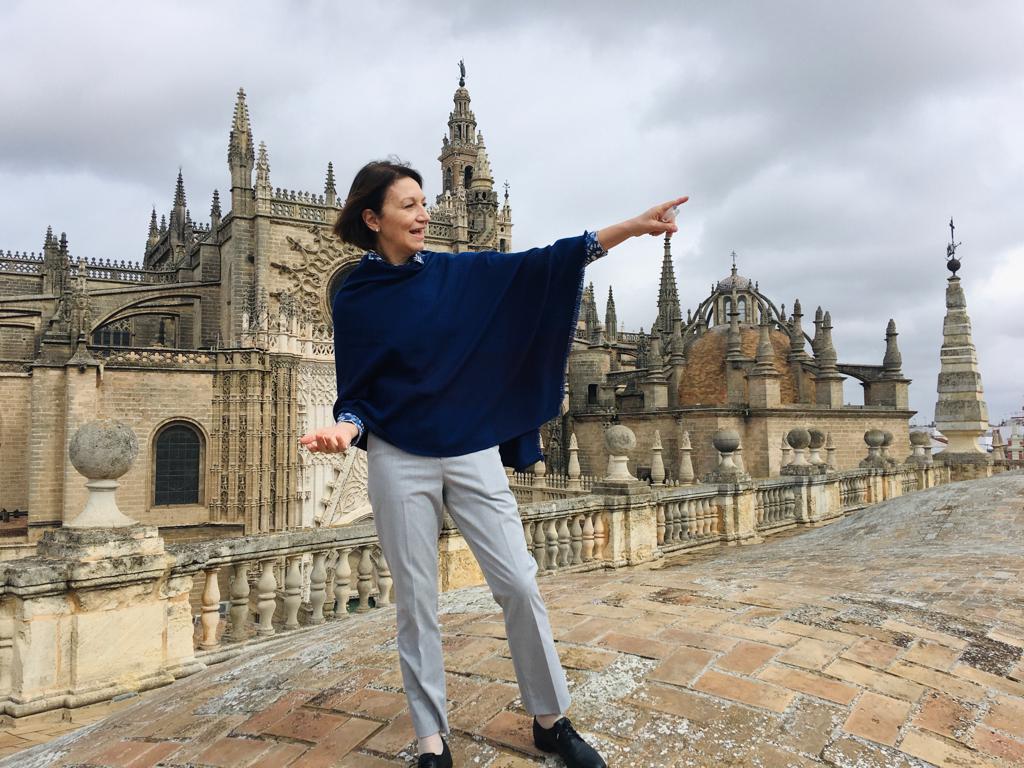 Diana Wechsler en el techo del Archivo General de Indias (Sevilla). Ph. Ariel Rivero, BIENALSUR.